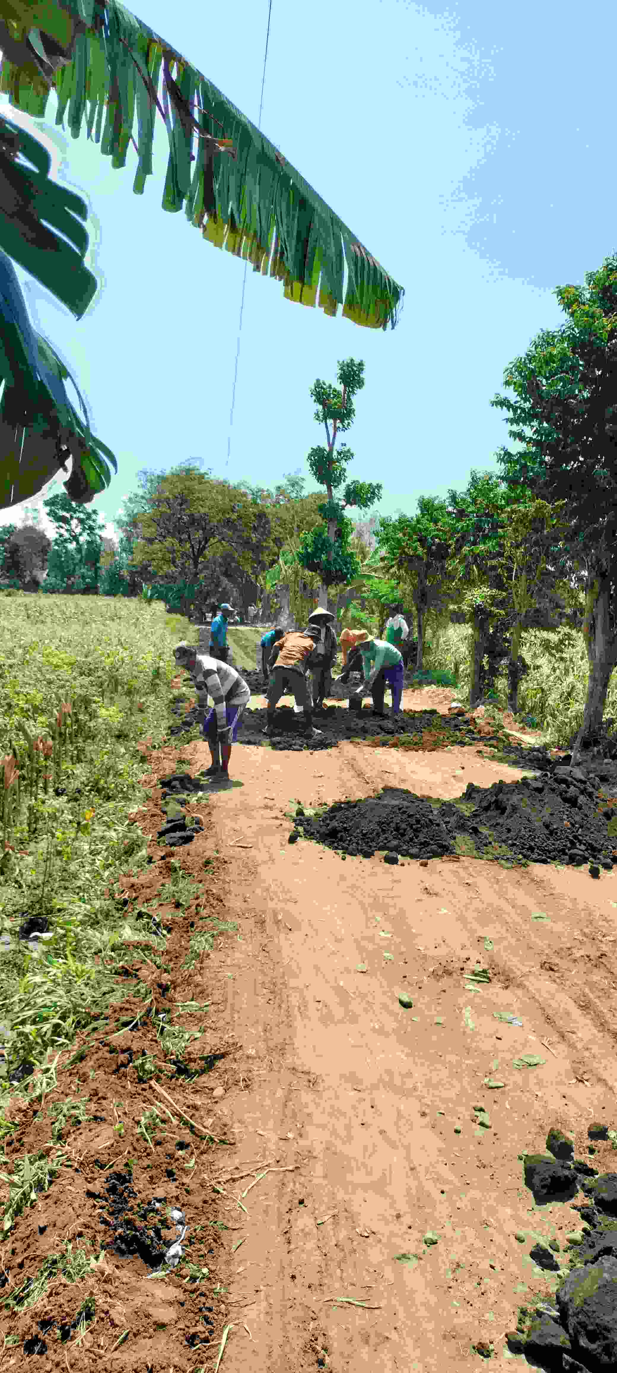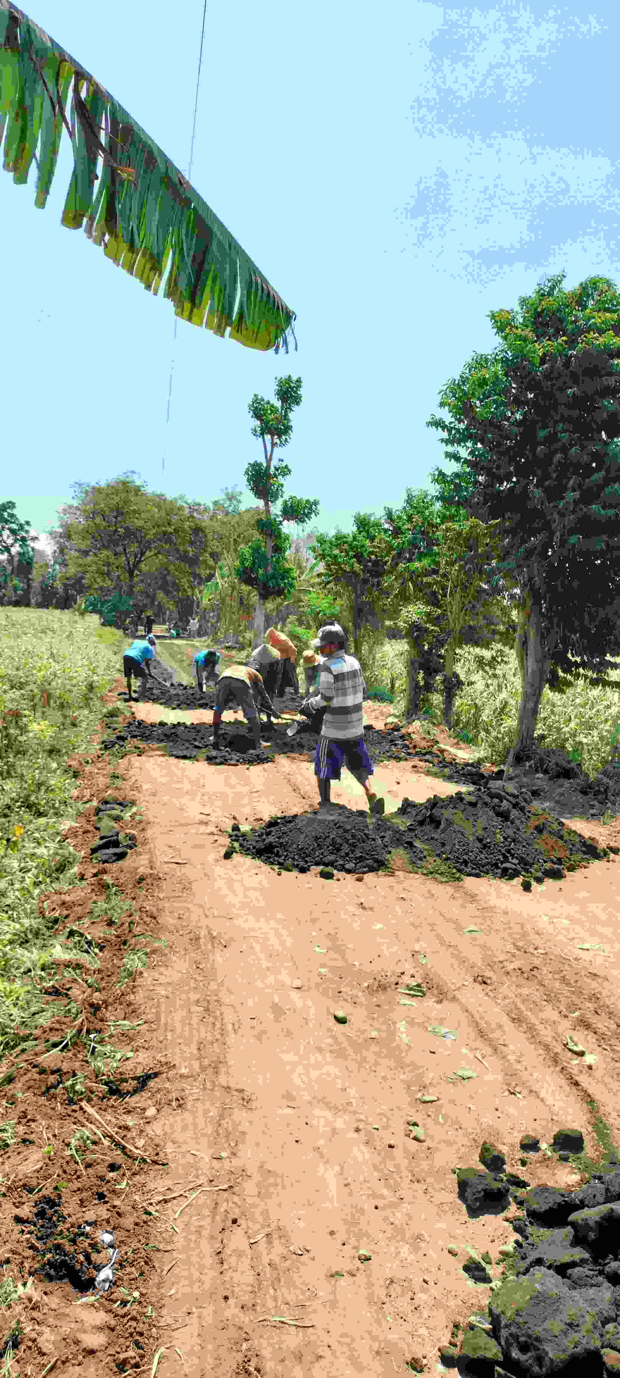Sebanyak ( 70 ) tujuh puluh orang dan (4) empat Mobil Pik'up di gerakkan untuk bekerja di Malam hari guna Membuang Tumpukan Tanah dan Rumput Gajah di sisi kanan kiri Jalan sehingga Jalan Desa di Dua dusun tersebut kini Menjadi sangat Lebar.